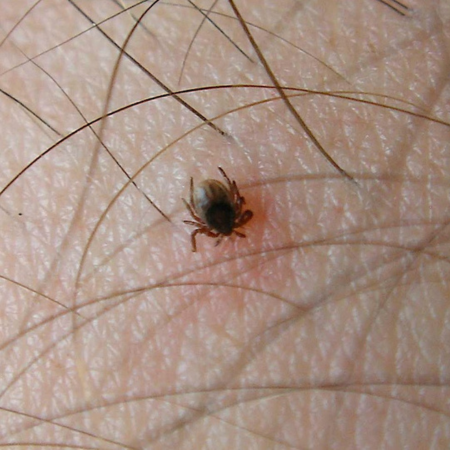 Présentes de mars à novembre, principalement en zones humides (forêts, champs, prés et jardins), les tiques sont d'importants vecteurs de pathogènes (bactéries, virus, parasites) responsables de maladies infectieuses. Elles se transmettent lorsque les tiques se nourrissent du sang des animaux ou des humains sur lesquels elles se fixent. En France, la maladie humaine la plus courante transmise par les tiques Ixodes Ricinus est la borréliose de Lyme. En 2023, près de 39 000 cas ont été diagnostiqués en médecine générale.
