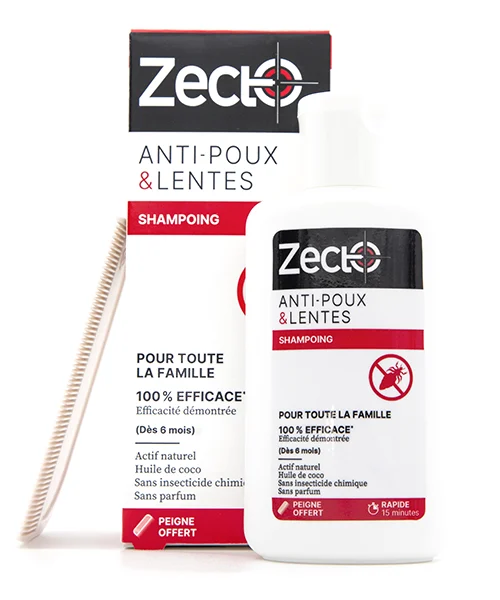 - Efficacité démontrée : après 15 minutes de contact avec ZECTO® Shampoing Anti-poux et lentes, 100% de poux sont morts.